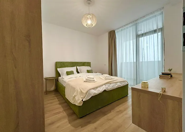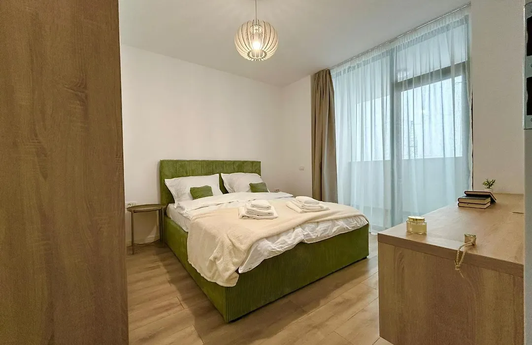 V'One Business & Comfort Apartment - Free Parking Timisoara is located 2.3 km from the 9-hectare garden "Botanic Park" and approximately 10 minutes by car from the Holy Trinity Statue. The apartment assures guests' safety through 24-hour security service, while also offering city views.